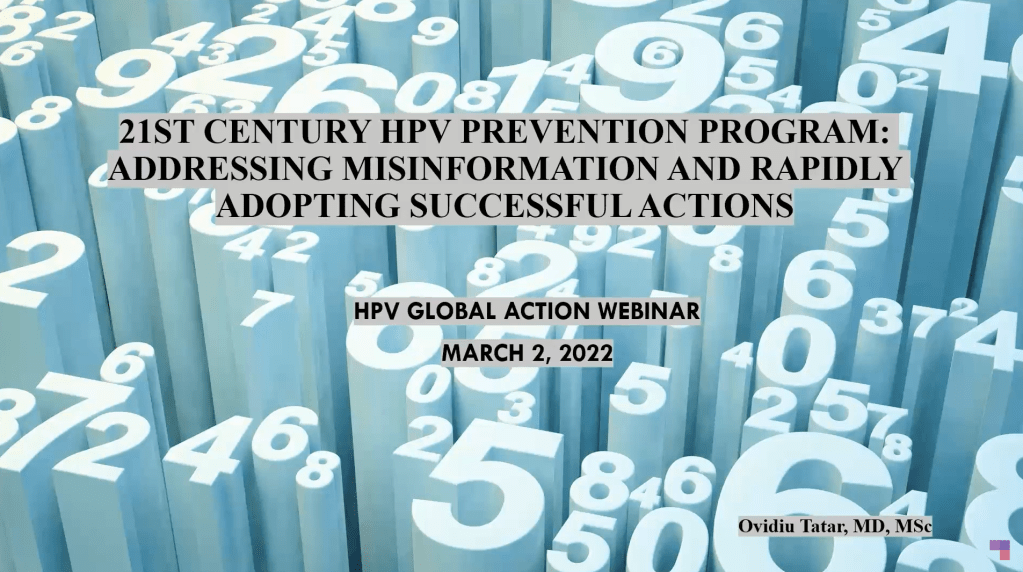 Tatar, O. (2022) As part of the webinar – 21st Century HPV Prevention Program: Addressing Misinformation and Rapidly Adopting Successful Actions. HPV Global Action [Presentation starts at 3:40 in the video below]